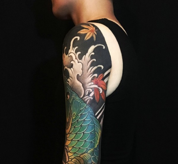 花臂鲤鱼纹身图片酷到极限
