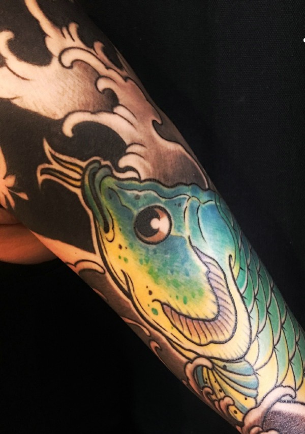 花臂鲤鱼纹身图片酷到极限