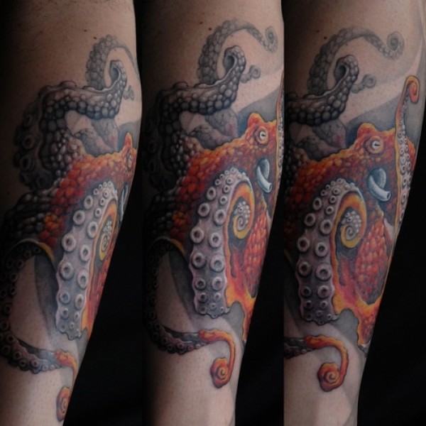 小腿章鱼纹身图案