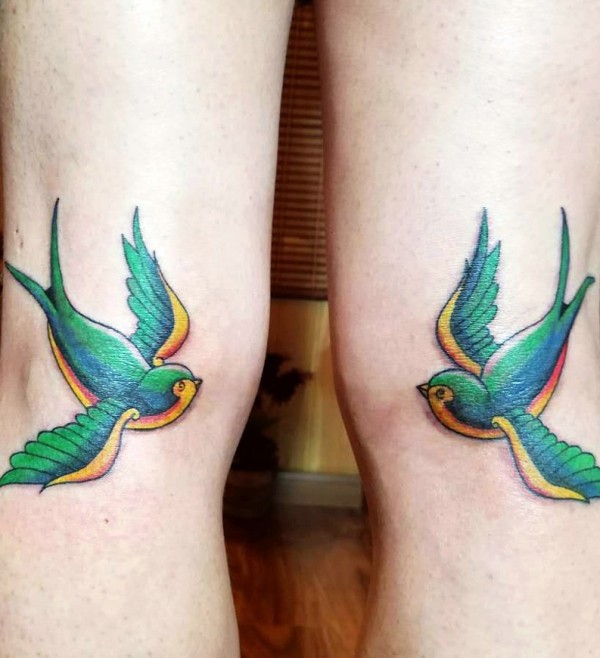 互相对望的双腿部小样子纹身图片