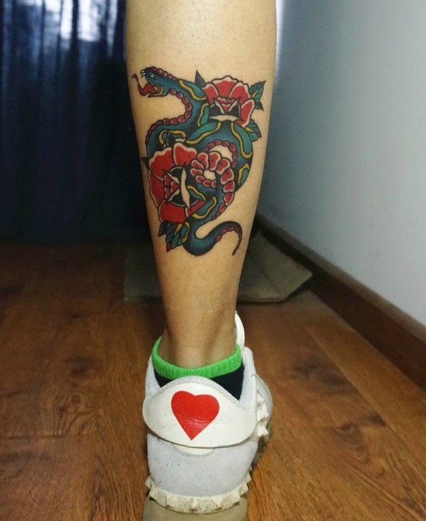 传统花腿纹身--18张传统风格的大花腿纹身图案作品