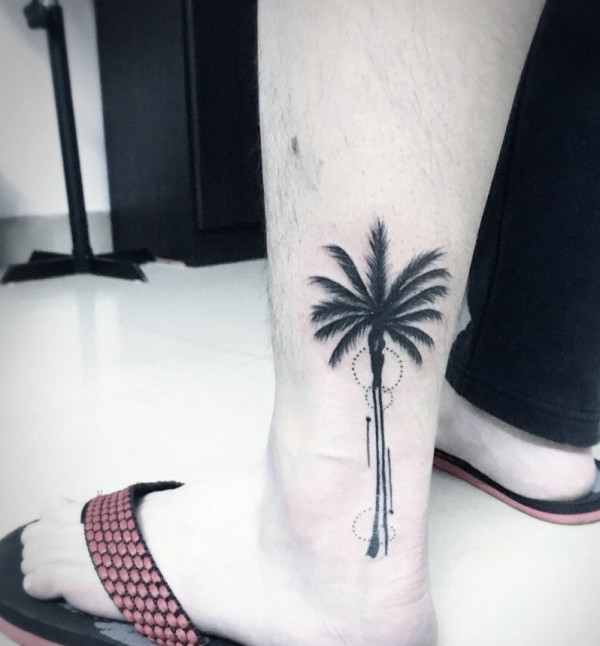 小腿椰子树纹身刺青好看极了