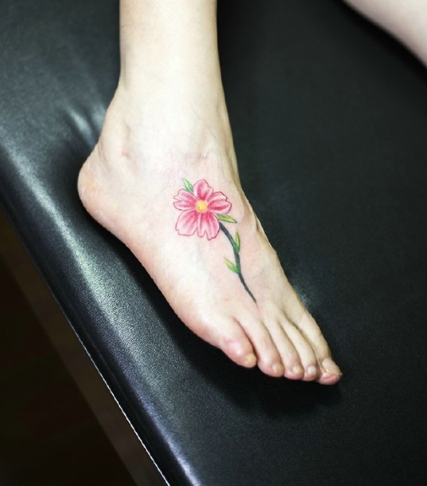 清新小桃花脚踝纹身_脚部纹身图案大全_纹身图吧