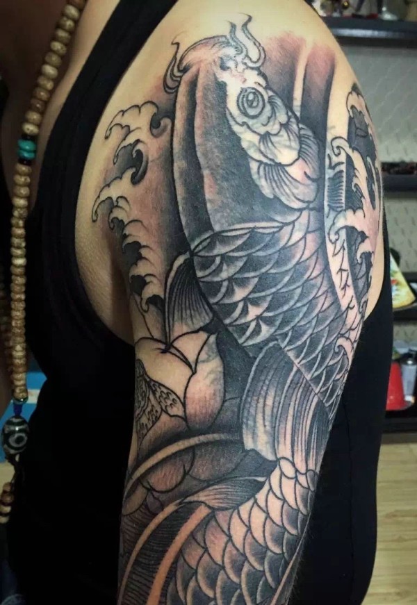 大臂黑白大鲤鱼纹身刺青值得拥有