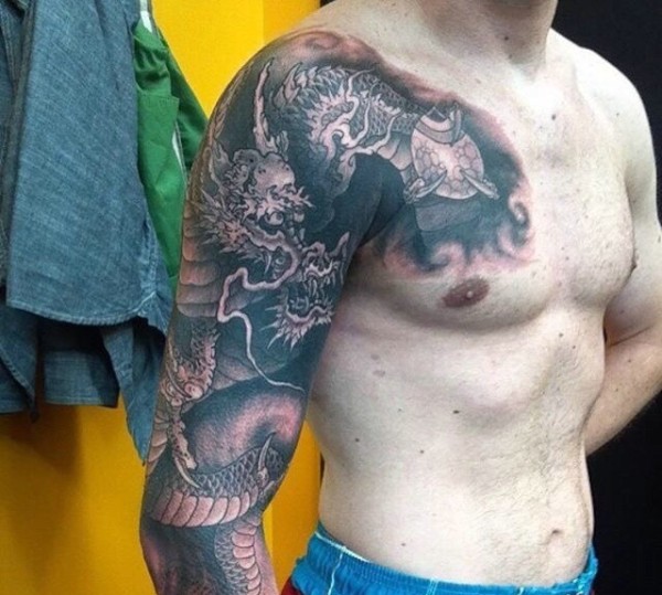 日式手彫刺青作品—半甲龙很感谢客户认可手彫刺青,手彫是日本纹身的手工雕刻技术,时间可以追溯到日本17世纪的江户时代。19世纪,手彫技术被日本黑帮挪用,被用作入会仪式,象征着从此就是江湖中人。在日式传统