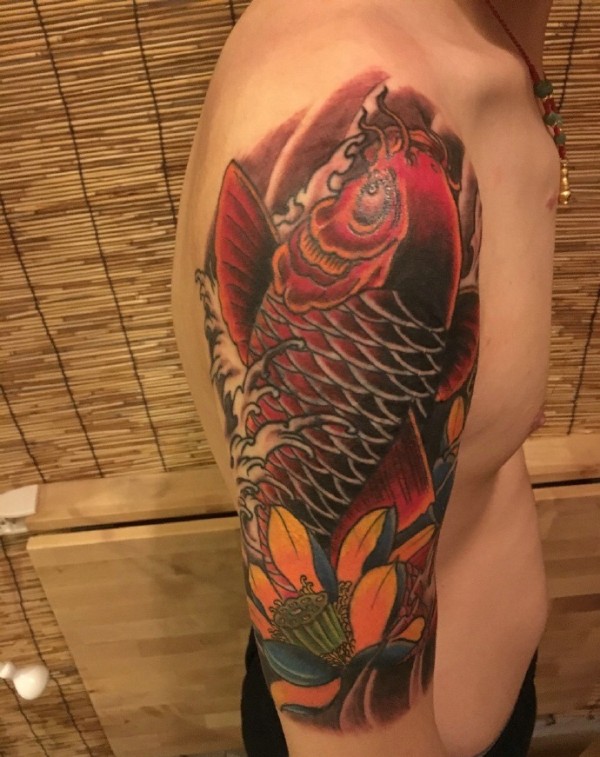 花臂红鲤鱼纹身刺青红红火火