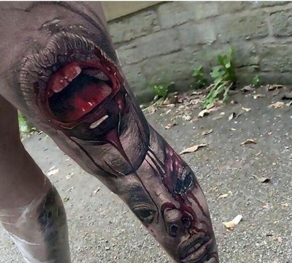 非常邪恶恐怖的腿部3d图腾纹身刺青