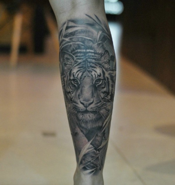 老虎图腾纹身 多款黑灰纹身点刺技巧老虎纹身图案
