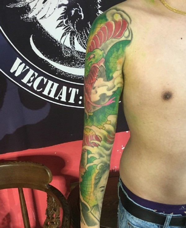 日式手彫刺青作品—半甲龙很感谢客户认可手彫刺青,手彫是日本纹身的手工雕刻技术,时间可以追溯到日本17世纪的江户时代。19世纪,手彫技术被日本黑帮挪用,被用作入会仪式,象征着从此就是江湖中人。在日式传统