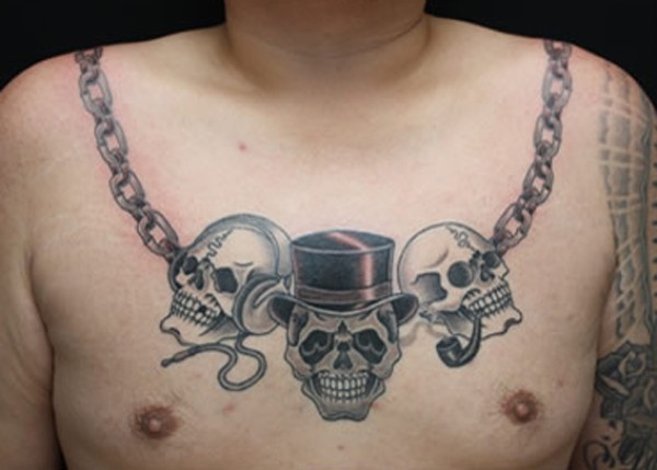 胸前骷髅锁链纹身图案
