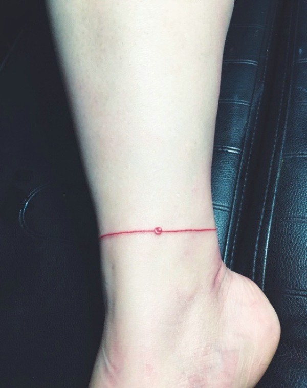 女生裸脚小红绳纹身图片很唯美