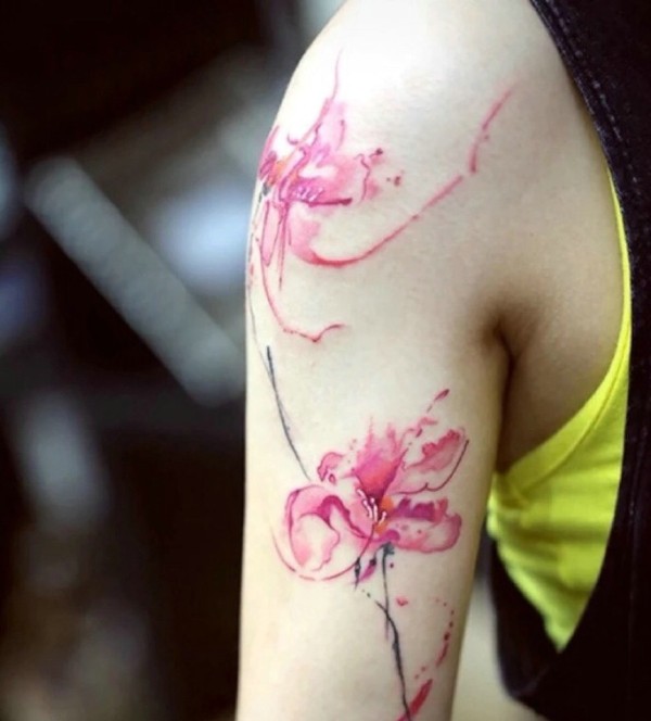 后肩唯美花藤英文图案图片_植物纹身图案大全_纹身图吧