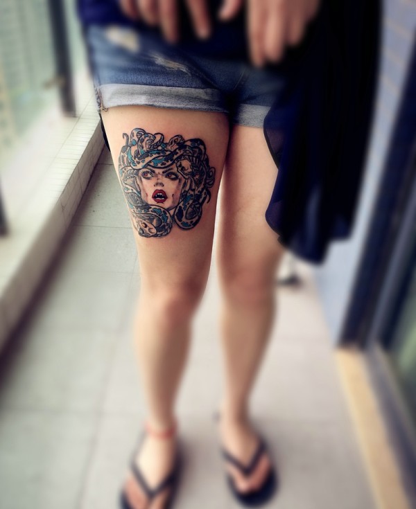 传统花腿纹身--18张传统风格的大花腿纹身图案作品