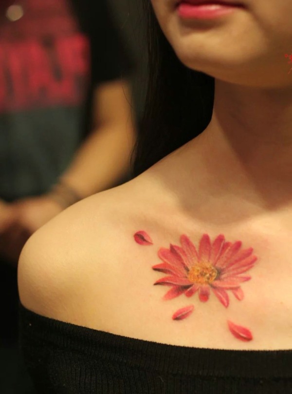 锁骨花朵纹身刺青恬淡的美腻