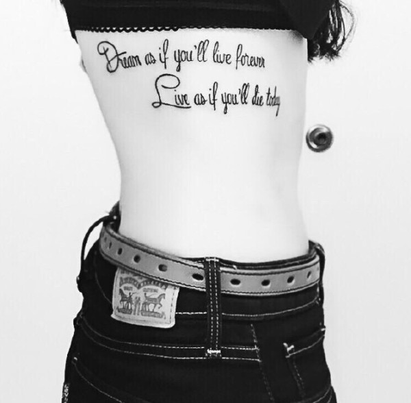 处在小蛮腰上的时尚英文纹身刺青