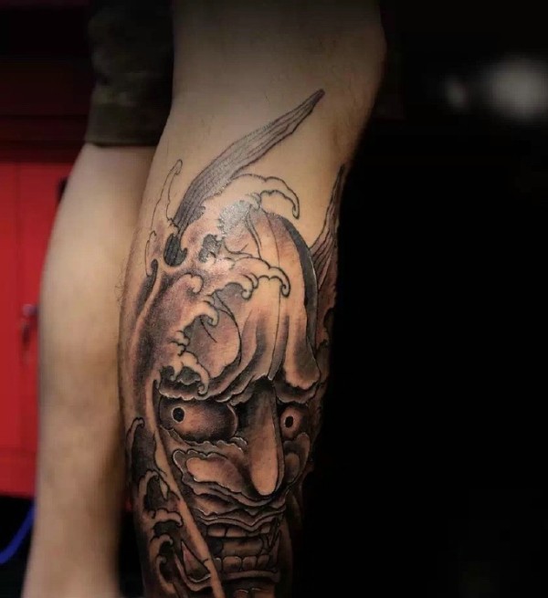小腿部传统帅气的般若纹身刺青