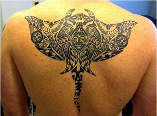 男性背部帅气的部落图腾纹身图案