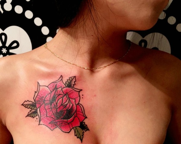 胸口一朵玫瑰花纹身刺青性感妖娆
