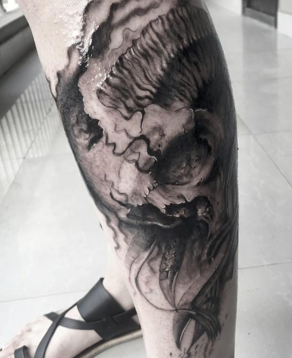 超帅时尚的黑灰骷髅与蛇纹身图案