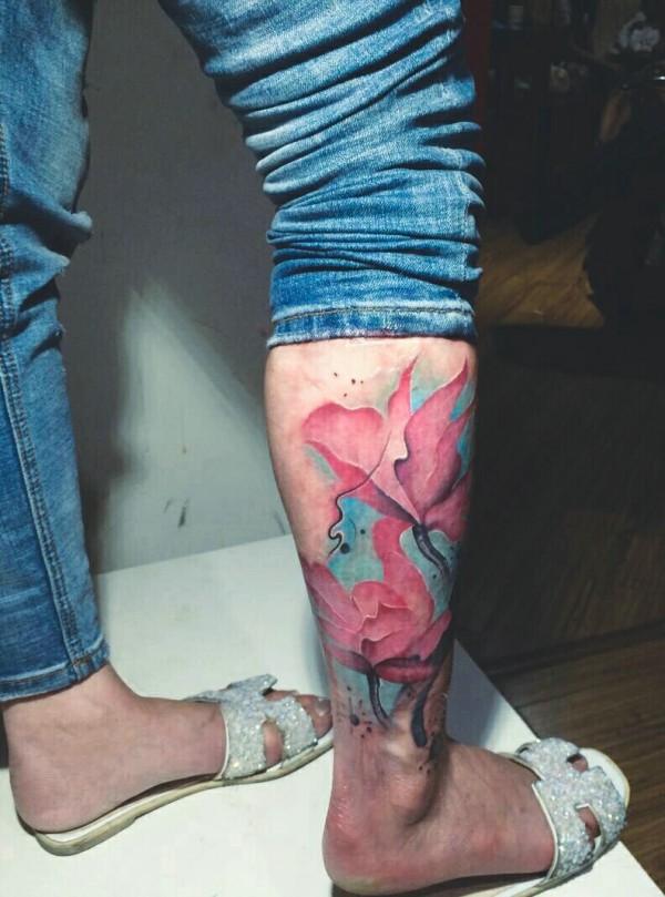 传统鲤鱼花小腿纹身_腿部纹身图案大全_纹身图吧