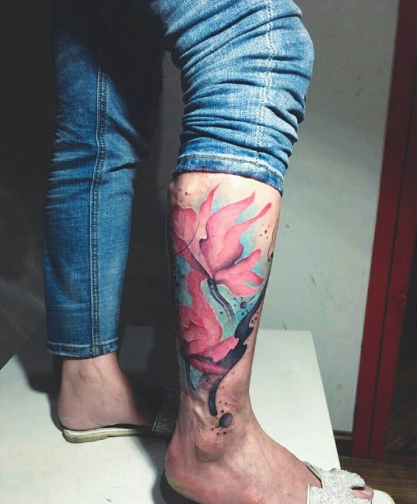 传统鲤鱼花小腿纹身_腿部纹身图案大全_纹身图吧