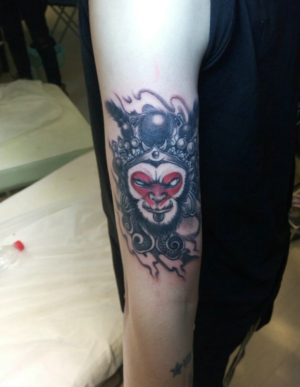 手臂外侧美猴王纹身图片很个性