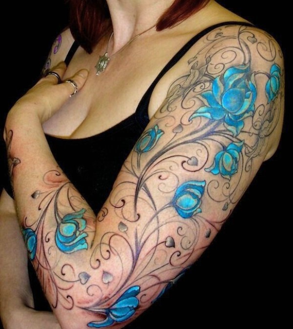 适合女生的大臂花朵纹身刺青很性感