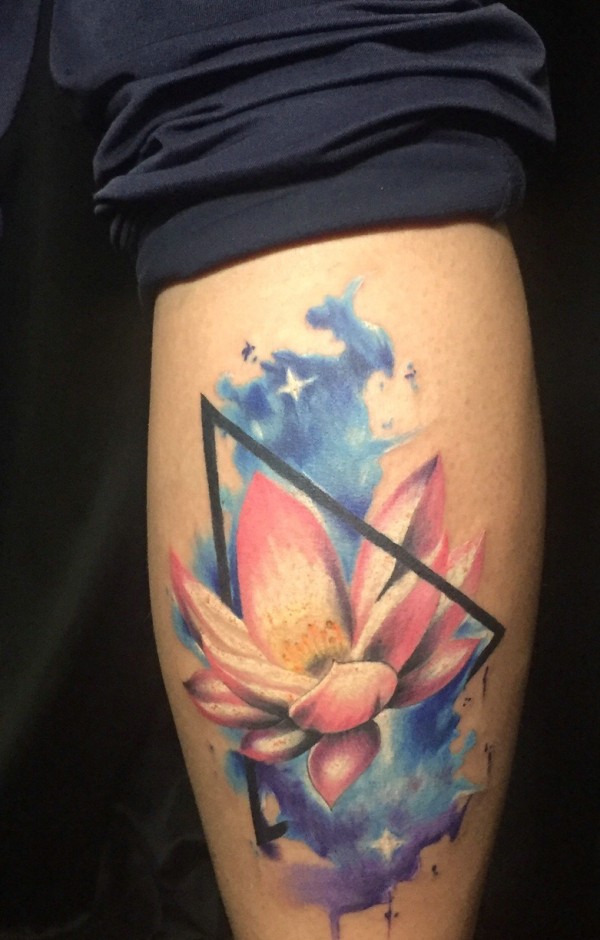 传统鲤鱼花小腿纹身_腿部纹身图案大全_纹身图吧
