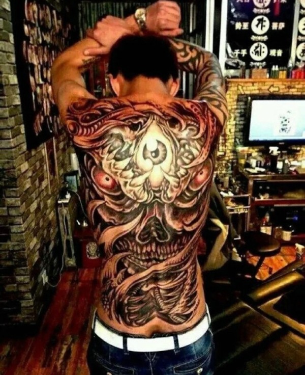 亮瞎双眼的满背炫酷大骷髅纹身图案