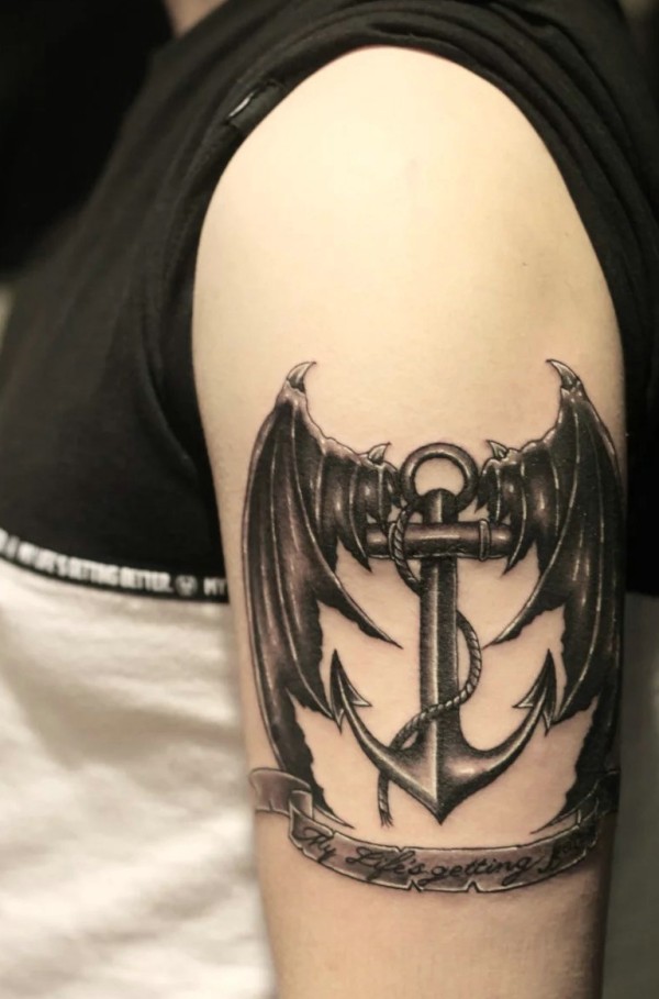 男人大臂黑白彼岸花骷髅_黑白纹身图案大全_纹身图吧