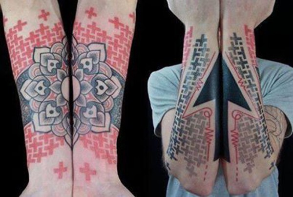 手臂个性几何图案纹身