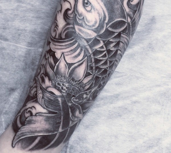 传统鲤鱼花小腿纹身_腿部纹身图案大全_纹身图吧