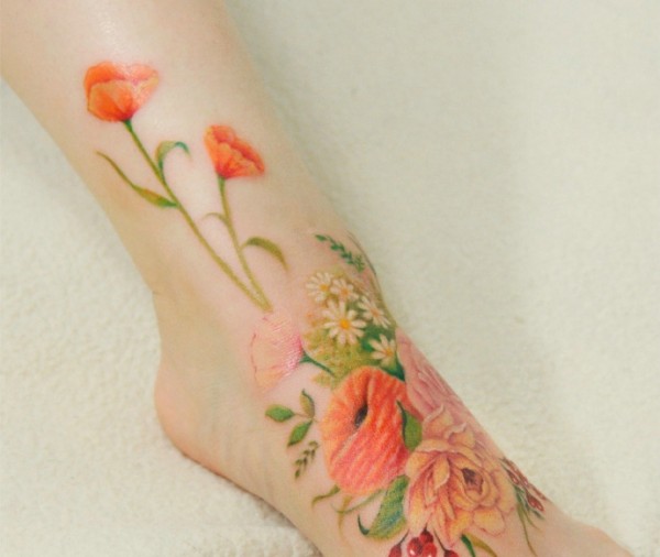 清新花朵腿部纹身图案图片_植物纹身图案大全_纹身图吧