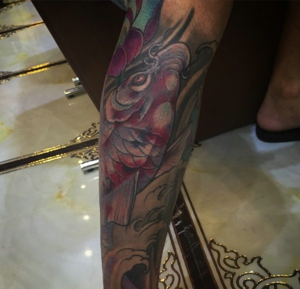 传统鲤鱼花小腿纹身_腿部纹身图案大全_纹身图吧