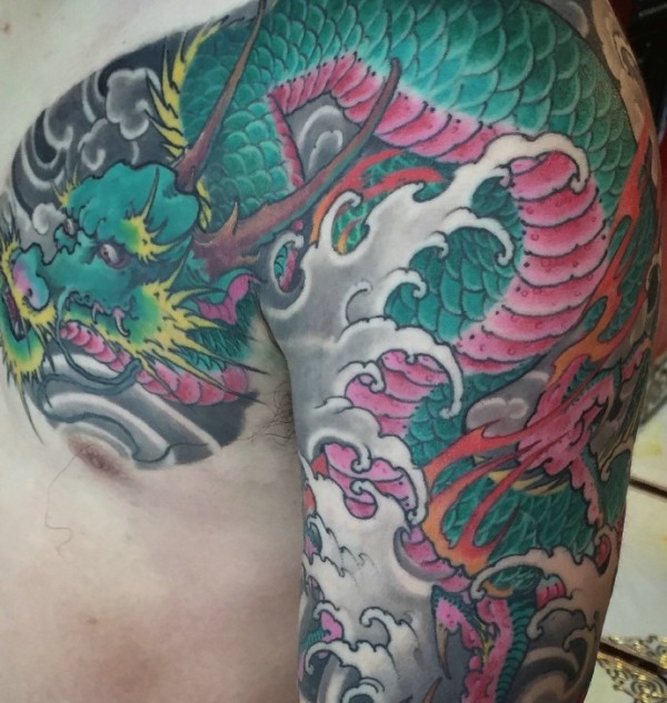 日式手彫刺青作品—半甲龙很感谢客户认可手彫刺青,手彫是日本纹身的手工雕刻技术,时间可以追溯到日本17世纪的江户时代。19世纪,手彫技术被日本黑帮挪用,被用作入会仪式,象征着从此就是江湖中人。在日式传统