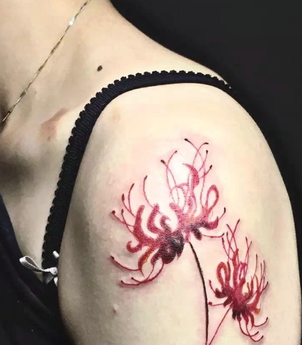 后肩唯美花藤英文图案图片_植物纹身图案大全_纹身图吧