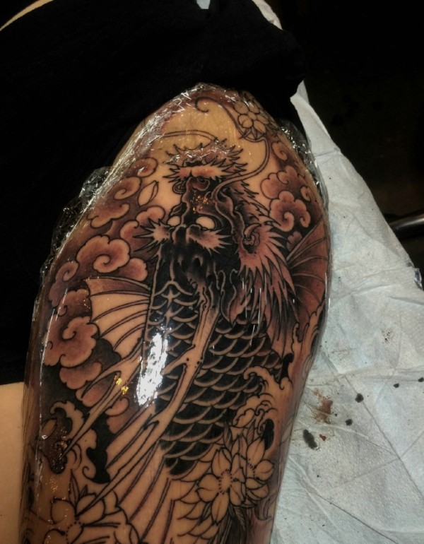 日式手彫刺青作品—半甲龙很感谢客户认可手彫刺青,手彫是日本纹身的手工雕刻技术,时间可以追溯到日本17世纪的江户时代。19世纪,手彫技术被日本黑帮挪用,被用作入会仪式,象征着从此就是江湖中人。在日式传统
