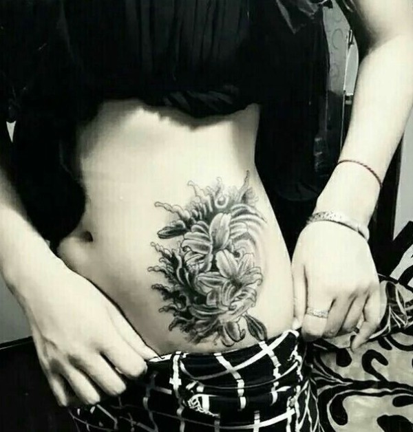 女性腰部莲花花纹刺青_腰部纹身图案大全_纹身图吧