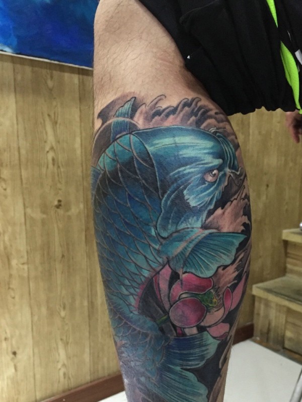 传统鲤鱼花小腿纹身_腿部纹身图案大全_纹身图吧