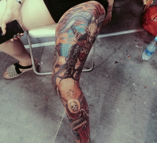 花腿纹身--一组大黑腿纹身图案作品欣赏