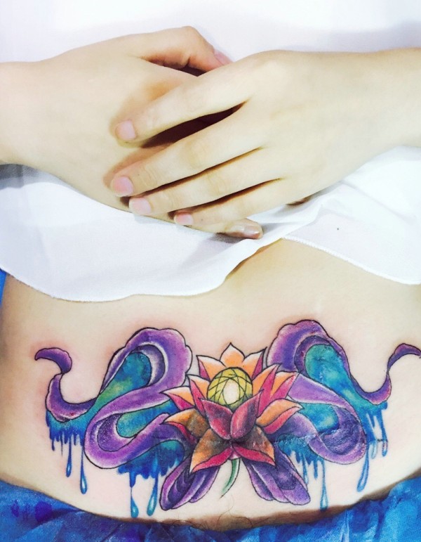 女性腰部莲花花纹刺青_腰部纹身图案大全_纹身图吧