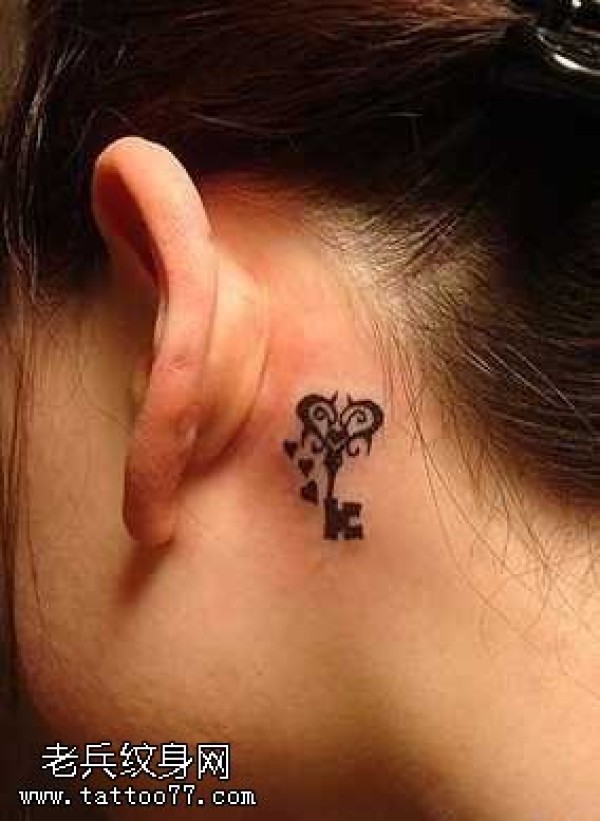 多款女生耳后黑色线条素描文艺小清新小图案纹身图案