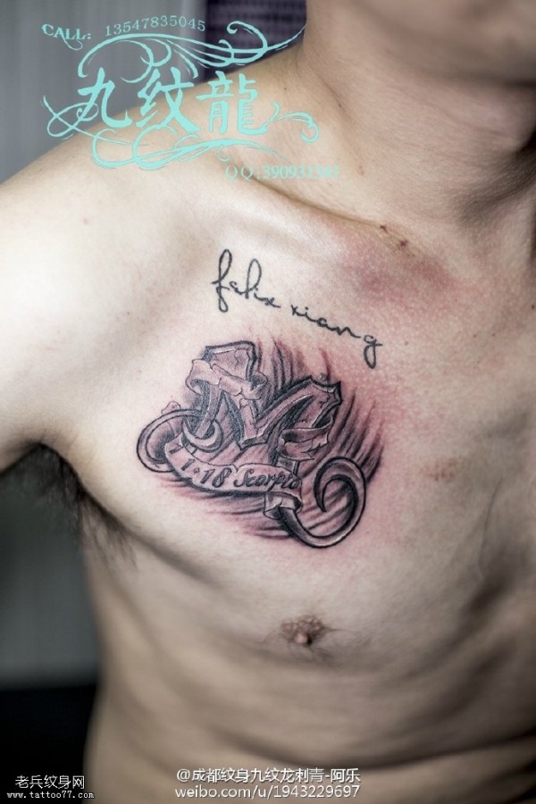 纹身图案胸部男 简洁大方的男生胸部纹身图案