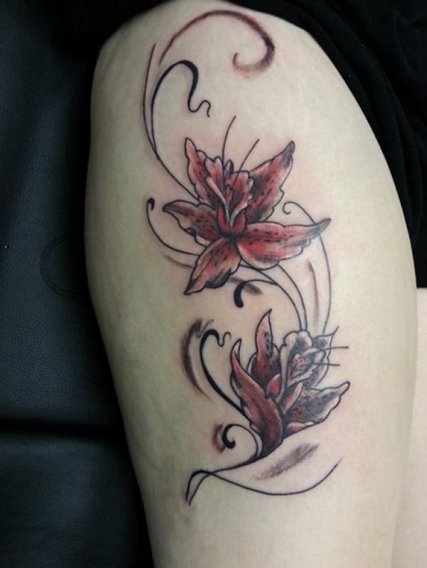 大腿上的花纹身图案