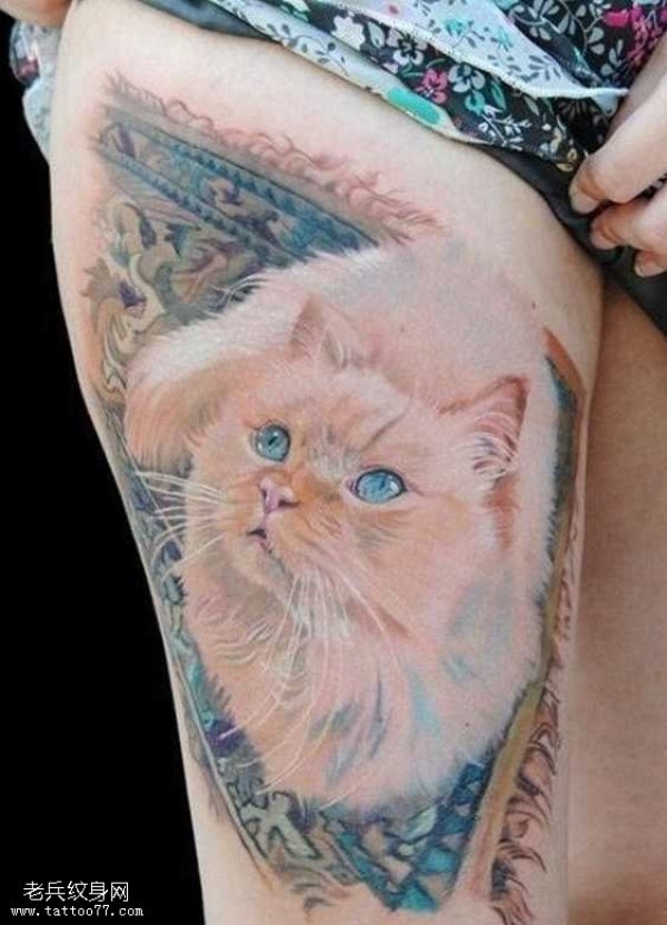腿部一套猫咪纹身图案