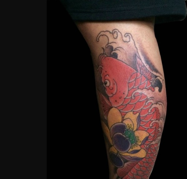 传统鲤鱼花小腿纹身_腿部纹身图案大全_纹身图吧