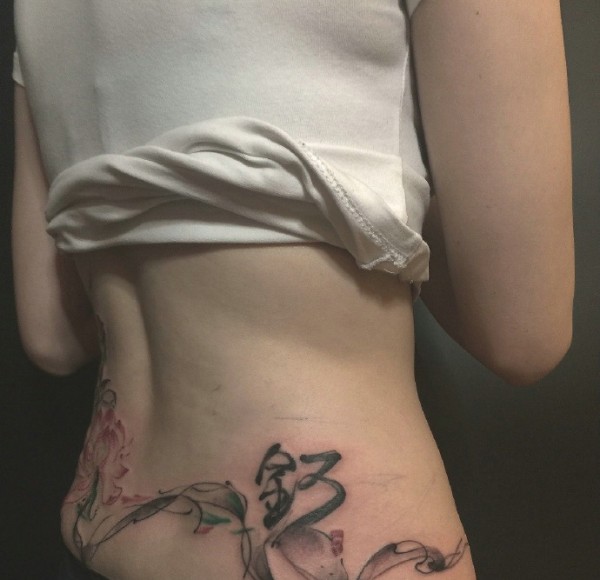 女性腰部莲花花纹刺青_腰部纹身图案大全_纹身图吧