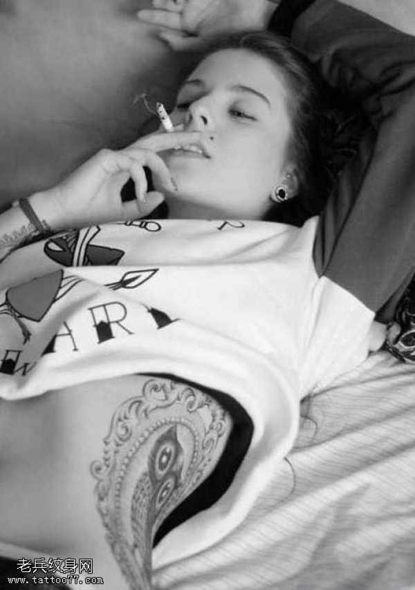 女性腰部莲花花纹刺青_腰部纹身图案大全_纹身图吧
