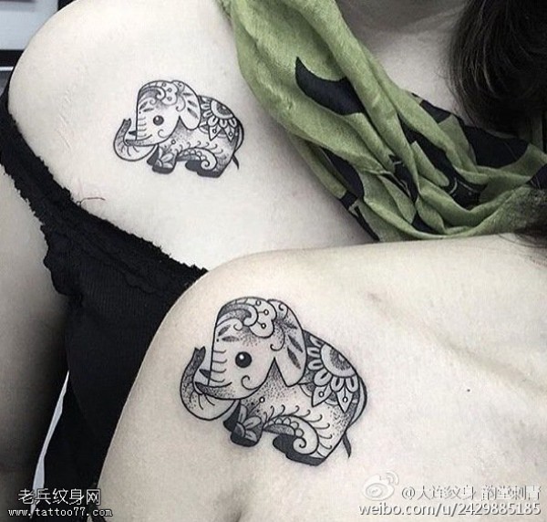女生肩花纹身_15张女性双肩对称的肩花纹身图案作品图片