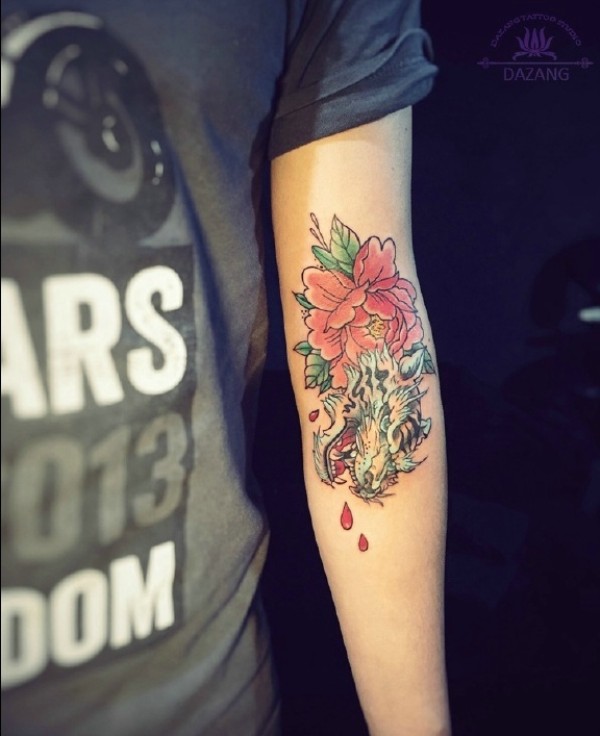 手臂莲花蛇纹身图案_臂部纹身图案大全_纹身图吧